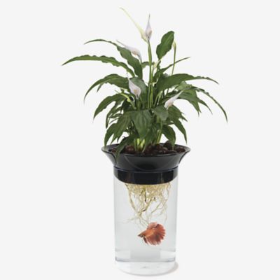Back to The Roots Water Garden Self-cleaning Fish Tank Mini Aquaponic Ecosystem. It can be placed against a wall for maximum space utilization.