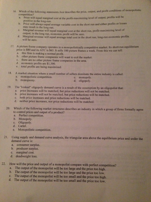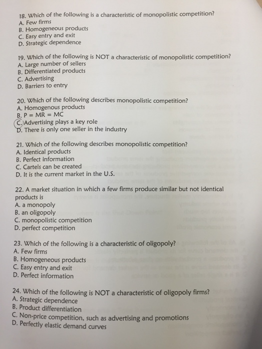 The firms tend not to recognize the reaction of competitors when determining prices. The first importan view the full answer. Which set of characteristics below best describes the basic features of monopolistic competition.