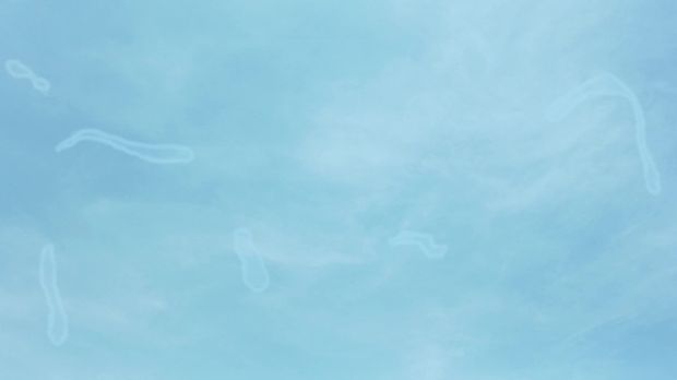 Sobald man auf eine weiße Wand oder den blauen Himmel sieht erscheinen durchsichte Fäden oder Würmer vor dem Auge. Der Erreger der am häufigsten festgestellt wird ist Candida albicans. Es könnte ein trockenes Auge vorliegen mit eventuell auch fehlenden Fetten oder Flüssigkeit im Tränenfilm.
