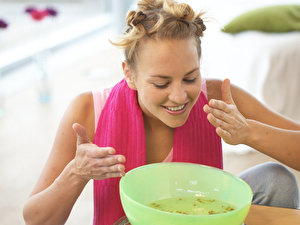 Gut geeignet zur Inhalation bei Erkältungen sind Kräuteraufgüsse etwa mit Kamille Eukalyptus oder Thymian.