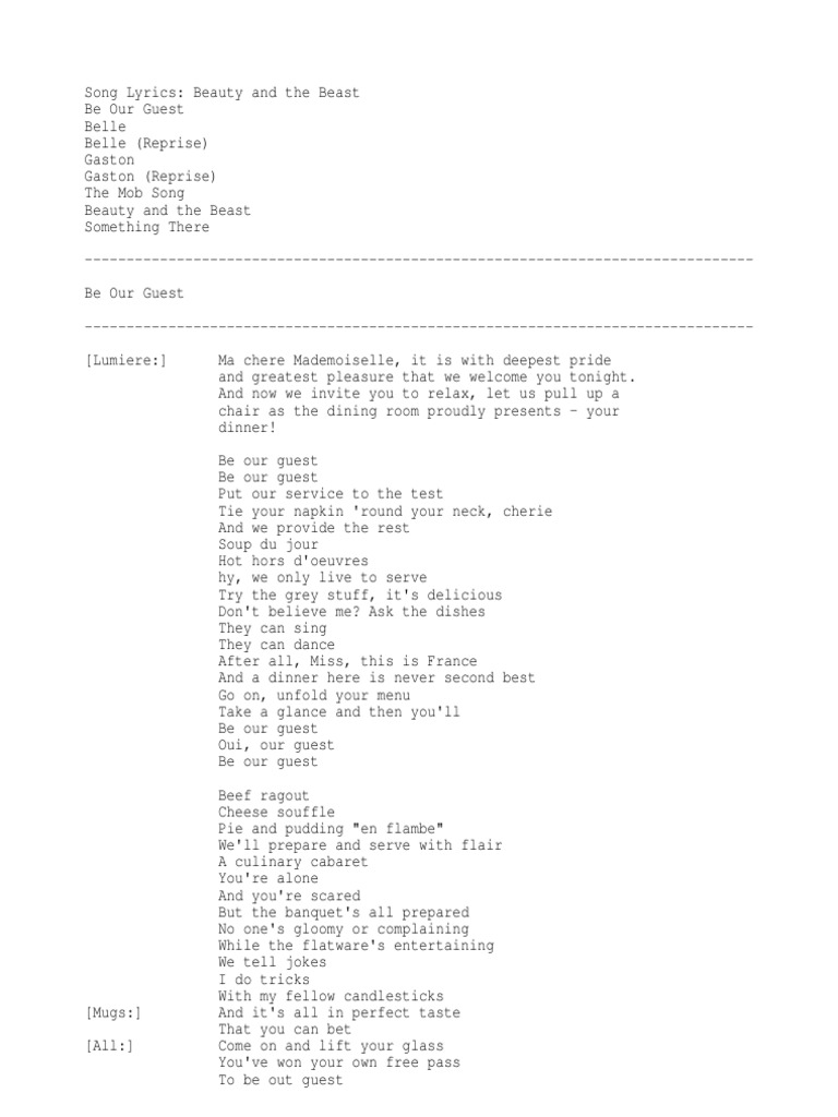 Anúncio Mr Beauty Equipment - You Wont Believe The Top Results. Parcelamento Frete Grátis. Due to the recent release of Disneys Beauty and the Beast here are the lyrics for the Mob Song featuring Luke Evans and Josh GadCopyright of Walt. Lyrics to The Mob Song by Disney from the Beauty and the Beast Original Motion Picture Soundtrack album - including song video artist biography. The Mob Song Lyrics. Broadway musical soundtrack lyrics. About Press Copyright Contact us Creators Advertise Developers Terms Privacy Policy Safety How YouTube works Test new features Press.