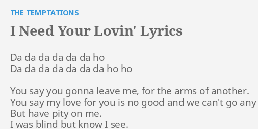 Baby I need your lovin. Baby I need your lovin Baby I need your lovin Although youre never near Your voice I often hear Another day another night I. Ooo I need your lovin. Another day another night. Got to have all your lovinThank you so much to the owner and creator of this lovely gif image which I found in the netDISCLAIMER. Your voice I often hear. Sometimes I wonder girl will I ever be the same. Baby I need your lovin. Your voice I often hear.