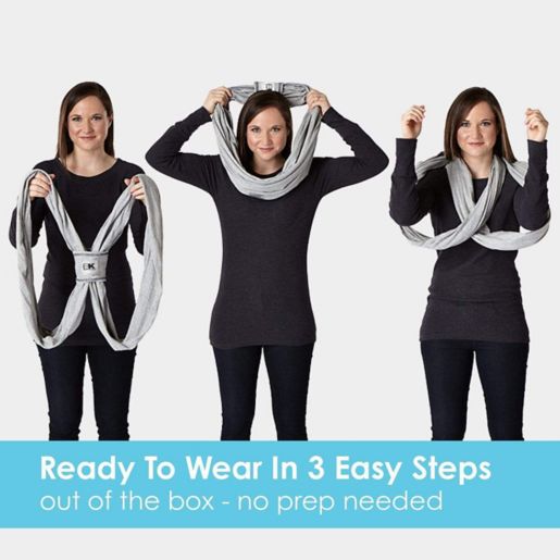 Baby Ktan Baby Carrier. The Baby Ktan Breeze carrier is looped and formed ready to slip on right out of the box. Simply slip your baby carry sling on like a T-shirt in three simple steps.
