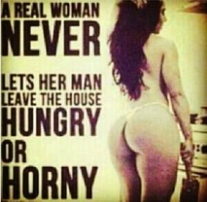 A good woman will never let her man leave home hungry or horny Man says. Its always that one gurl. Likewise a real man never lets her woman leave horny or needy.